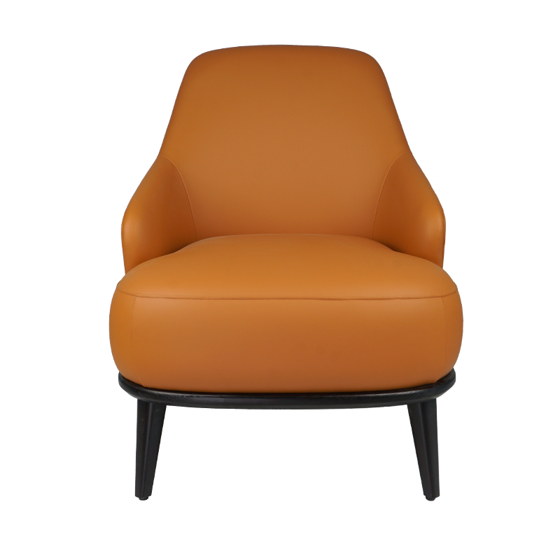 The appearance of the chair adopts a modern and minimalist design style with smooth lines and elegant shapes. The orange PU fabric is soft in texture and warm in tone, giving you a warm and comfortable feeling. At the same time, this chair is also equipped with a ottoman in the same color, allowing you to place your feet more comfortably while resting.