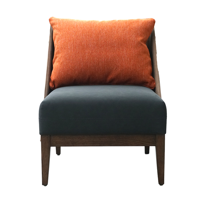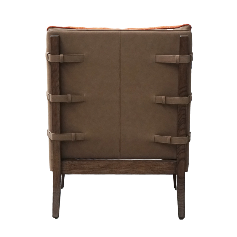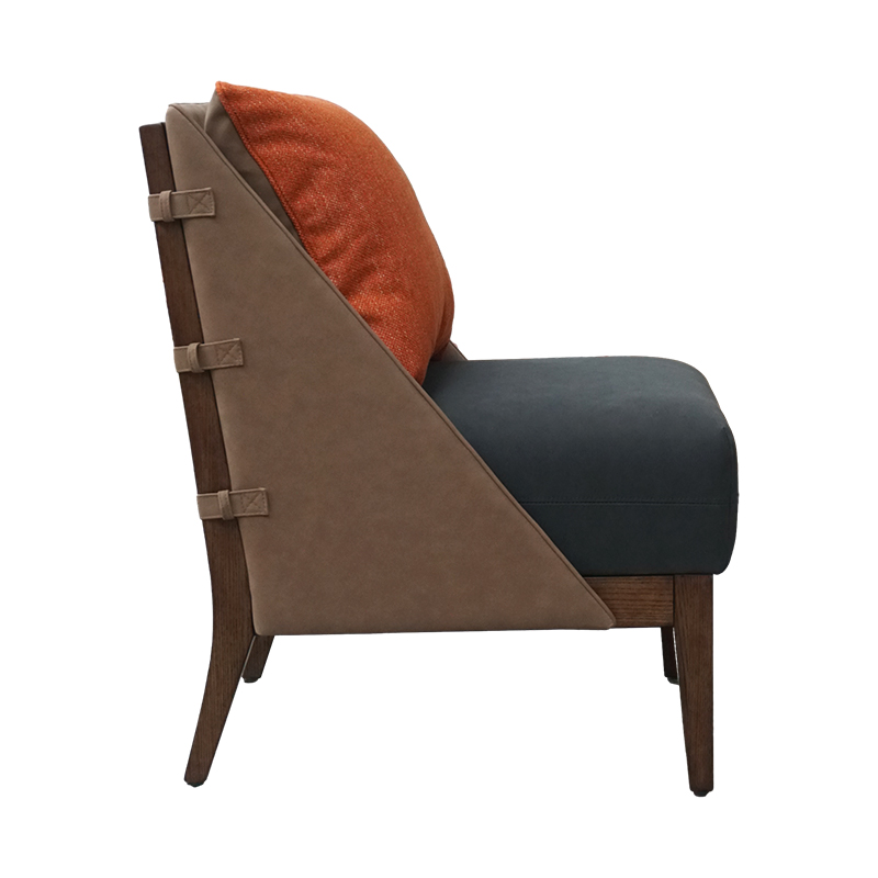 Selead Orange Cushion Faux Leather Ash Wood Hotel Lobby Chair