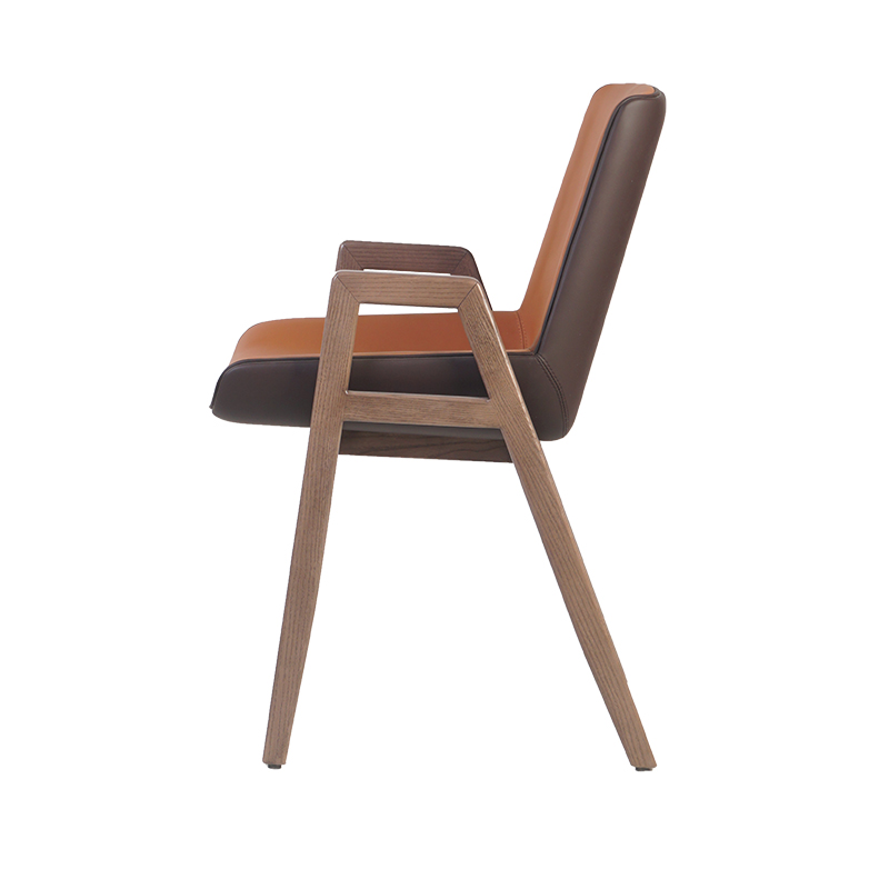 All in all, this Saddle Leather Brown Solid Wood Frame Hotel Bedroom Armchair is a high-quality choice for hotel furniture with its elegant appearance, comfortable sitting feeling and high-quality materials. It not only enhances the taste and class of the hotel room, but also brings a wonderful living experience to the residents.