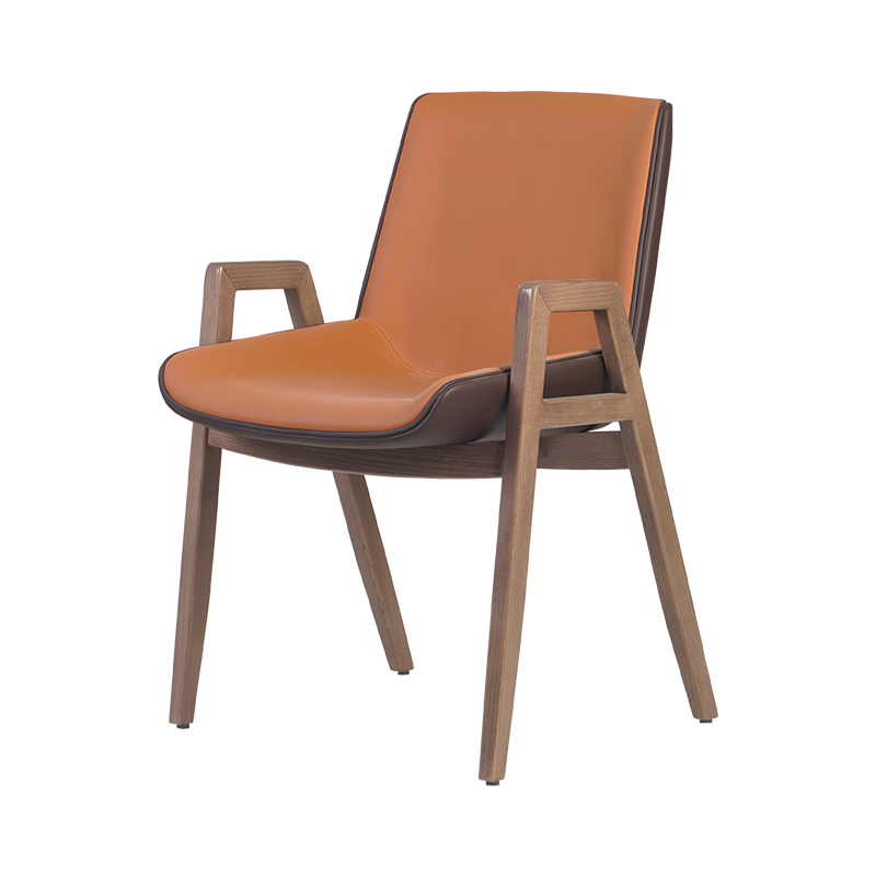 Saddle leather is a high-quality leather with soft texture and delicate touch, which has good elasticity and breathability, making the chair more comfortable. At the same time, the saddle leather is specially treated to be wear-resistant, stain-resistant and easy to clean, making it suitable for high-frequency use in hotels and other places.
